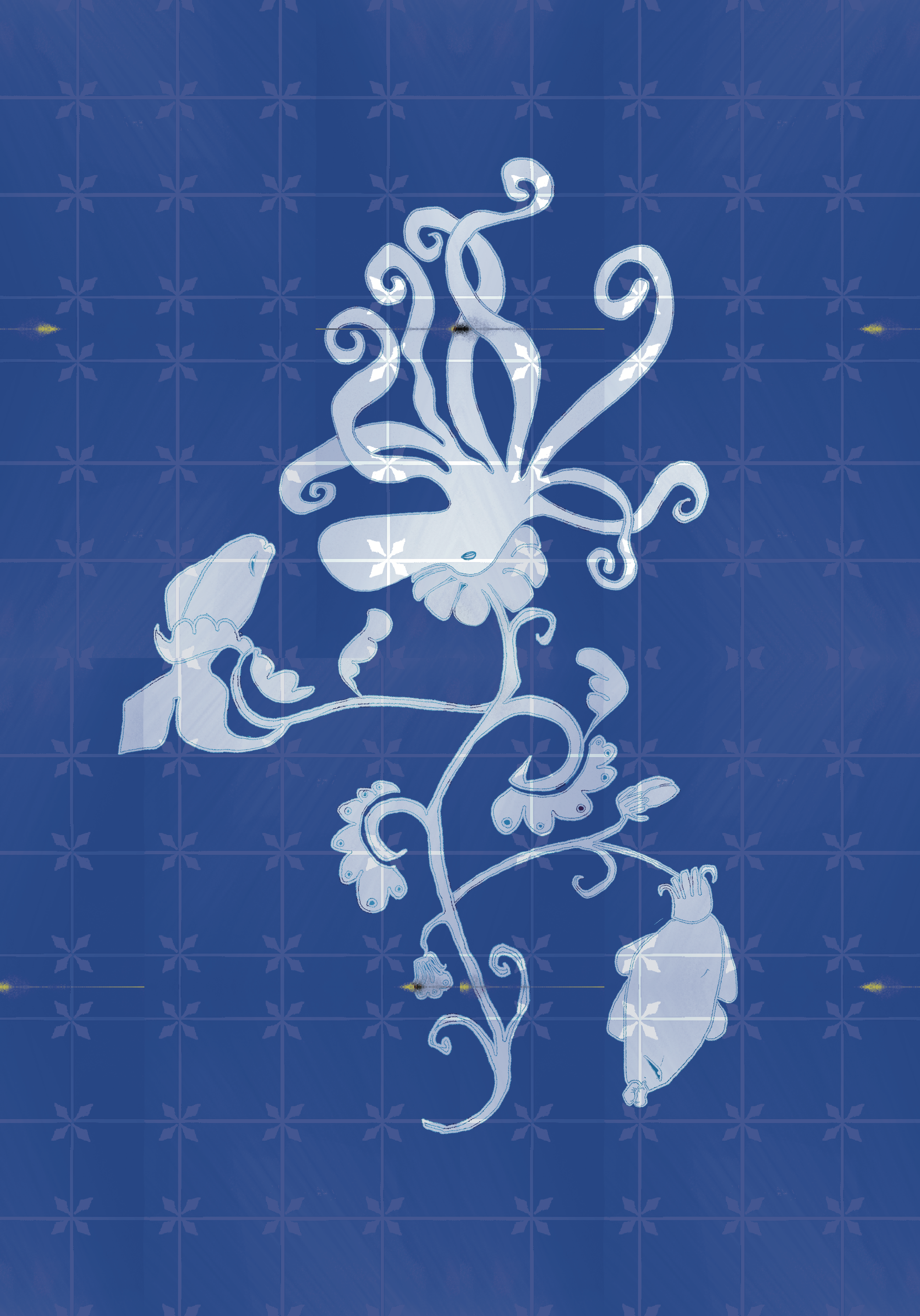 This was just an interpretive spontaneous artwork inspired from a mug i got back from my travels to the blue pottery factories in Jaipur, which had a similar blue octopus made on it .